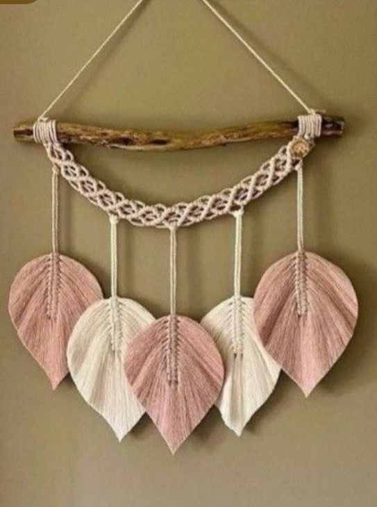 Decoracion de pared en Macrame y hojas tonos pasteles, o a escoger.Medidas: 55ctm. largo y hojas acorde a vision estetica.